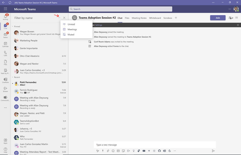 Ocultar, mostrar, silenciar o anclar un chat en teams.. En cualquier momento puedes pasar del chat a las videollamadas con solo presionar un botón. Ocultar, mostrar, silenciar o anclar un chat en teams. Use las opciones proporcionadas para elegir un informe de un área de trabajo o una aplicación de power bi... Agregar un sondeo a un teams o chat.